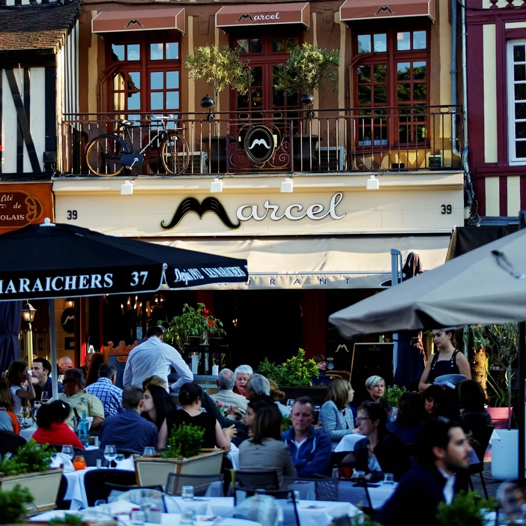 Découvrez notre adhérent Vitrines de Rouen, Marcel apéro bistro. C’est un bistro convivial et chaleureux, un restaurant authentique. On y prend l’apéro, on y déjeune et on y dîne en dégustant de savoureuses recettes réalisées à partir de produits frais et provenant de producteurs locaux. Marcel vous propose d’accompagner vos dégustations avec un choix de + de 50 références de vins au verres soigneusement sélectionnés.